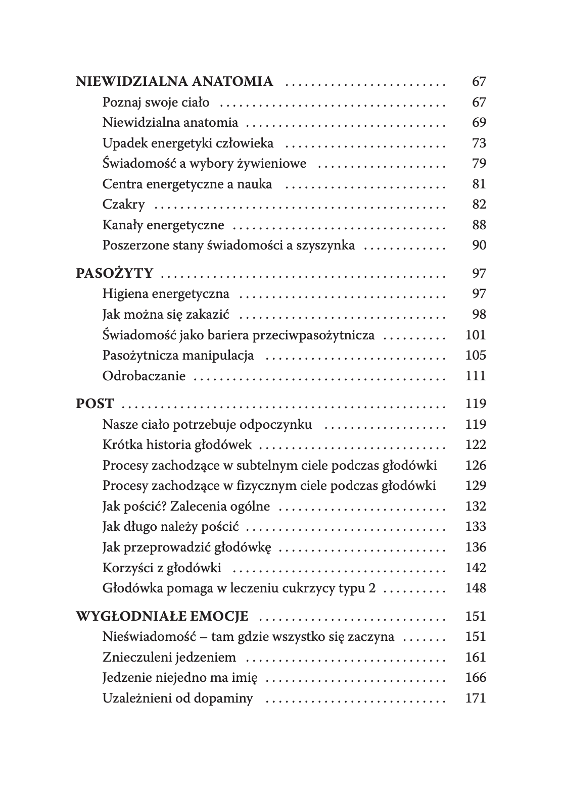 z kompulsywnym jedzeniem, czy pragniesz odkryć moc postu, czy po prostu chcesz głębiej poznać siebie – ta książka przemówi do Ciebie. Przekaz w niej zawarty wyrasta z moich doświadczeń i zdobytej wiedzy, lecz najcenniejsze skarby kryją się między wierszami. Dlatego proszę Cię przede wszystkim o to, abyś wyczuł ducha, który tchnął życie w te słowa. To właśnie on – nie same pojęcia czy teorie – poprowadzi Cię właściwą ścieżką.