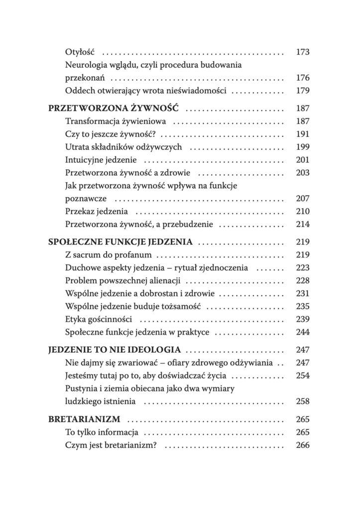 Ta książka dowodzi, że o jedzeniu można jeszcze wiele powiedzieć. Wśród tysięcy publikacji na temat odżywiania wyróżnia się spojrzeniem z lotu ptaka, ukazując, że zwykły akt jedzenia ma głębszy wymiar. Dokonuję tu redefinicji jedzenia, a wraz z kolejnymi rozdziałami przekonasz się, że przemiana sposobu odżywiania może stać się przemianą całego życia – zgodnie z zasadą „przez żołądek do serca”.